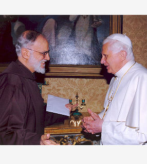 O pregador da Casa Pontifícia, Frei Raniero Cantalamessa, O.F.M. Cap., e o Papa Bento XVI.